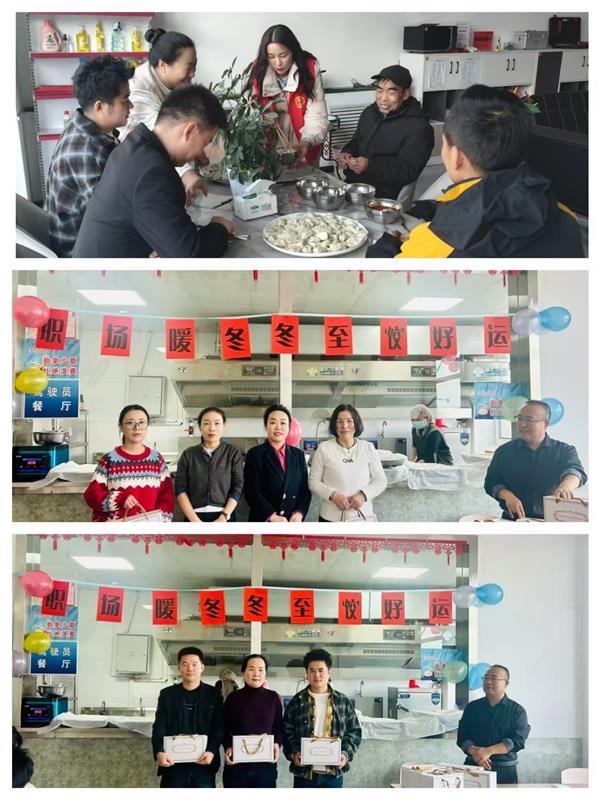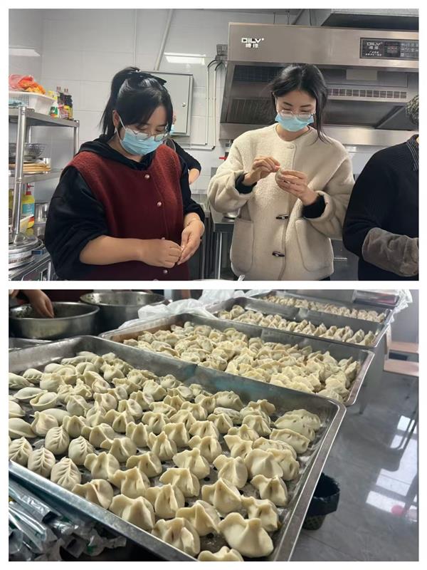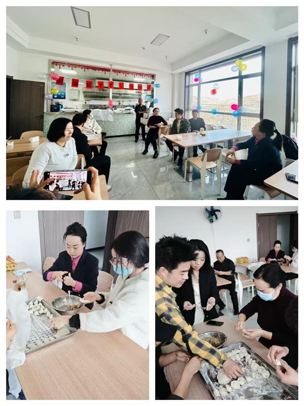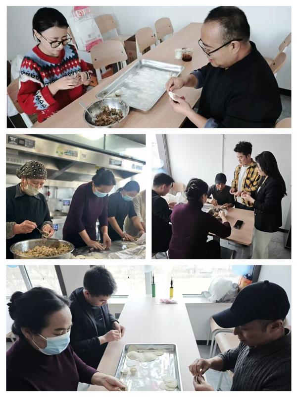 集團(tuán)領(lǐng)導(dǎo)班子成員也一同加入到包餃子的行列中,一邊包餃子一邊與年輕員工分享冬至習(xí)俗:“冬至不端餃子碗,凍掉耳朵沒人管。今天咱們多包點(diǎn),讓每個人都吃得暖暖和和!”