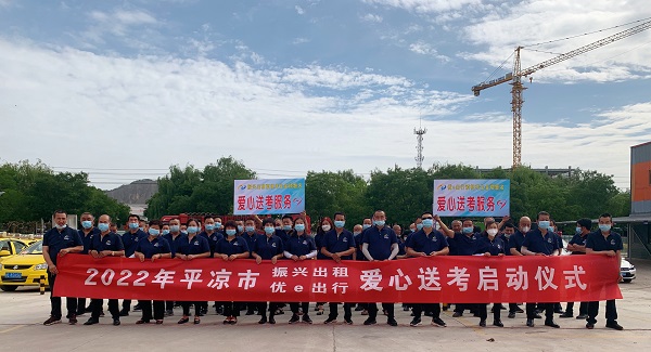 2022年6月6日上午,平?jīng)鍪姓衽d集團下屬的振興出租公司,優(yōu)e出行網(wǎng)約車公司以“愛心送考,為夢護航”為主題的公益活動在平?jīng)鍪嗅轻紖^(qū)工業(yè)園區(qū)甘肅振興天通電子物流團舉行啟動儀式。啟動儀式上平?jīng)鍪械缆愤\輸管理局樊昌明科長發(fā)表了真誠的講話,表達了對莘莘學子的殷切期盼,同時也號召廣大駕駛員們積極響應,匯聚愛心,共同展示社會文明風采。平?jīng)鍪芯C合執(zhí)法隊六科科長劉偉紅就高考期間車輛安全出行進行重要部署,強調(diào)安全第一。儀式最后,由振興集團總經(jīng)理鄭虎宣布“愛心送考”儀式全面啟動。
